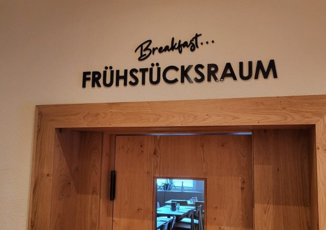 Die Taferne Mandling verkörpert den Charme einer traditionellen Gaststätte, in der herzliche Gastfreundschaft, gemütliches Ambiente und regionale Kulinarik im Mittelpunkt stehen – ein Ort, an dem man sich sofort willkommen fühlt. Vor dem Gebäude sorgt ein maßgefertigtes Leuchtschild für die richtige Aufmerksamkeit und lädt Gäste bereits von Weitem ein, innen sorgen Beschriftungen dafür, dass die Gäste stets wissen, wo sie hinmüssen. Eine gelungene Gestaltung, sowohl draußen als auch drinnen!